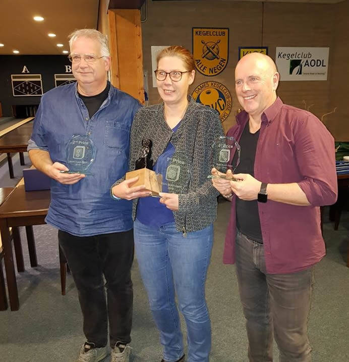 Op de foto zien we naast Olav ook de charmante Sabine Manten uit Duitsland. Zij kaapte met slechts 1500 punten verschil de overwinning weg voor de neus van "ons menneke". De derde plaats was voor alleskunner Ad van der Linden.