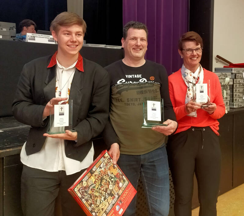 Organisatorisch zat alles piekfijn in elkaar. De gadgets om te loten waren prachtig. De zaal was prima op temperatuur en ook voor de scheidsrechters was er meer dan voldoende ruimte om te manoeuvreren. De trofeeën konden door de beugel en er waren extra prijzen voor een mahjong met rode draak als winnende steen. De lunch was voedzaam maar iets warms behoorde niet tot de mogelijkheden.